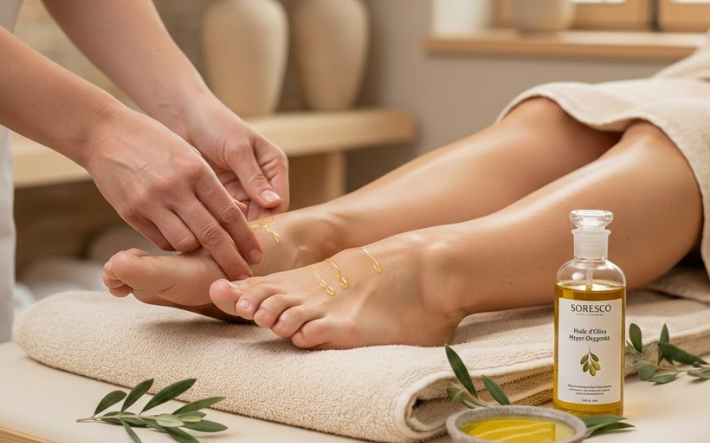 Conçu pour les pieds secs, fatigués ou sensibilisés, ce soin expert associe l’huile d’olive hyper‑oxygénée SORESCO à un massage enveloppant pour nourrir intensément, apaiser et restaurer le confort cutané.